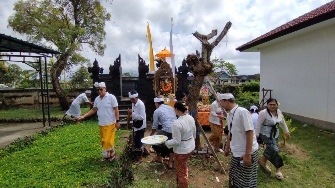 Rangkaian kegiatan ini dilanjutkan dengan persembahyangan bersama yang diikuti oleh seluruh jajaran KPU Jembrana. Melalui upacara ini, diharapkan tercipta suasana kerja yang harmonis, penuh keberkahan, serta memberikan vibrasi positif bagi seluruh pegawai dalam melaksanakan tugas dan tanggung jawab sebagai penyelenggara pemilu.