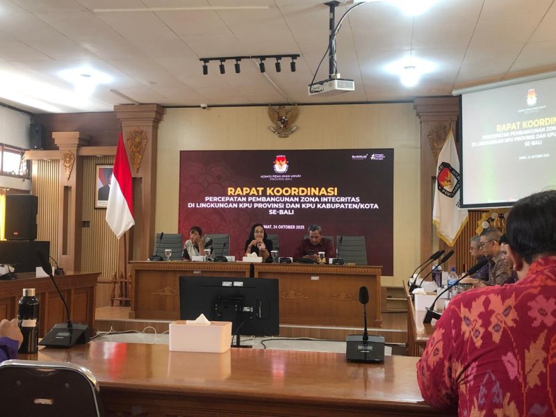 Denpasar, 24 Oktober 2025 — Komisi Pemilihan Umum (KPU) Kabupaten Jembrana menghadiri Rapat Koordinasi Percepatan Pembangunan Zona Integritas (ZI) yang dilaksanakan di Kantor KPU Provinsi Bali. Kegiatan ini bertujuan untuk memperkuat komitmen seluruh satuan kerja KPU dalam mewujudkan tata kelola organisasi yang bersih, transparan, dan akuntabel.