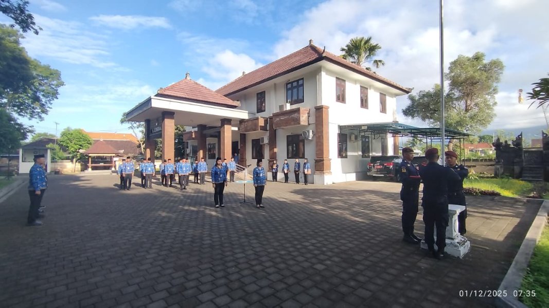 KPU Kabupaten Jembrana melaksanakan Upacara Peringatan HUT ke-54 Korps Pegawai Republik Indonesia (KORPRI) di halaman kantor KPU Kabupaten Jembrana, Senin (1/12/2025). Upacara yang dipimpin Sekretaris KPU Jembrana, I Gusti Ayu Ardani, diikuti seluruh ASN di lingkungan KPU Kabupaten Jembrana. Tahun ini, HUT KORPRI mengusung tema “Bersatu, Berdaulat, Bersama KORPRI, Mewujudkan Indonesia Maju.”