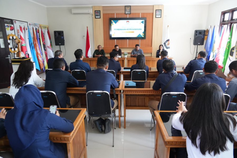 Rapat dibuka secara resmi oleh Ketua KPU Kabupaten Jembrana, yang dalam sambutannya menekankan pentingnya integritas, profesionalitas, serta kedisiplinan aparatur dalam menjalankan tugas dan fungsi kelembagaan. Beliau juga menegaskan bahwa pembinaan kepegawaian merupakan bagian krusial dalam menjaga kualitas kinerja organisasi.