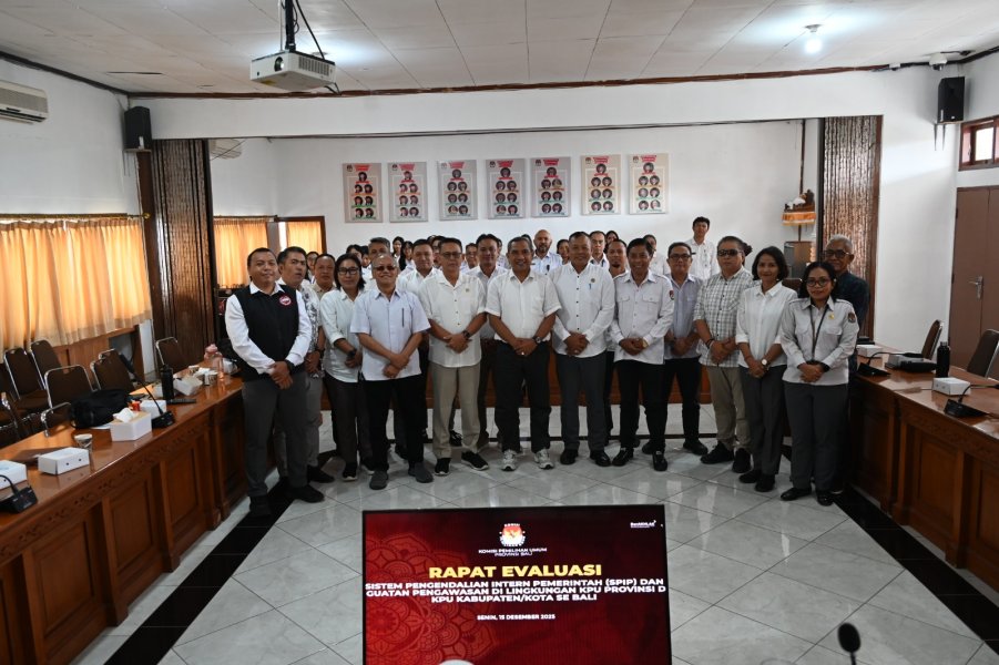 Denpasar – Dalam rangka memperkuat penerapan Sistem Pengendalian Intern Pemerintah (SPIP) serta meningkatkan efektivitas fungsi pengawasan internal guna menjamin tata kelola organisasi yang akuntabel dan berintegritas, Komisi Pemilihan Umum (KPU) Kabupaten Jembrana menghadiri Rapat Evaluasi SPIP dan Penguatan Pengawasan di Lingkungan KPU Provinsi dan KPU Kabupaten/Kota se-Bali.