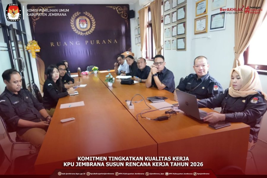 Komisi Pemilihan Umum (KPU) Kabupaten Jembrana menggelar rapat penyusunan dan pembahasan Rencana Kerja Tahun 2026 sebagai upaya memperkuat kinerja lembaga dan meningkatkan kualitas tata kelola organisasi.