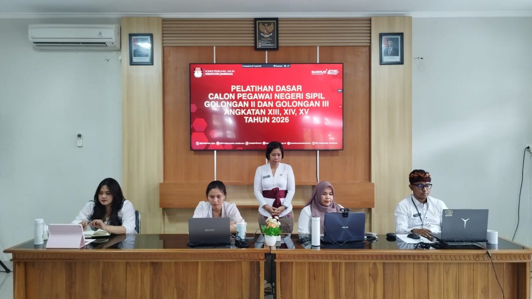 Dalam rangka mendukung pengembangan kompetensi aparatur sipil negara, Komisi Pemilihan Umum (KPU) Kabupaten Jembrana mengikuti kegiatan Zoom Meeting Pemaparan Awal Pelatihan Dasar (Latsar) Calon Pegawai Negeri Sipil (CPNS) Golongan II dan III Angkatan XIII, XIV, XV, dan XVI Tahun 2026 yang diselenggarakan oleh BKSDM Provinsi Bali.