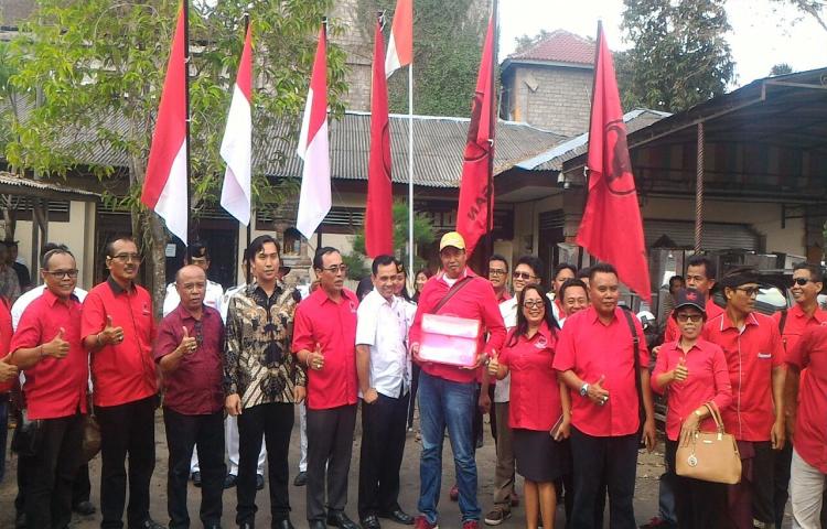 PDI Perjuangan datang ke KPU Jembrana untuk menyerahkan salinan daftar anggota, salinan KTA dan KTP-E pada. PDI Perjuangan datang bersama kadernya pukul 13.00 WITA diiringi oleh kesenian adrah dan dua beleganjur. Kedatangan PDI Perjuangan diterima oleh KPU Jembrana dengan melakukan registrasi dan menekankan bahwa yang bisa masuk ke ruangan verifikasi perwakilan 5 orang yaitu Ketua, Sekretaris, Bendahara dan Pehubung Partai ( LO ). Setelah dilakukan registrasi,acara dibuka oleh Ketua KPU Jembrana I Gusti Ngurah Agus Darmasanjaya,ST, MH, selanjutnya diarahkan ke tim verifikasi yang dikomandani oleh Divisi Hukum KPU Jembrana Nengah Suardana. Dalam Verifikasi dinyatakan data yang diserahkan sesuai dengan SIPOL