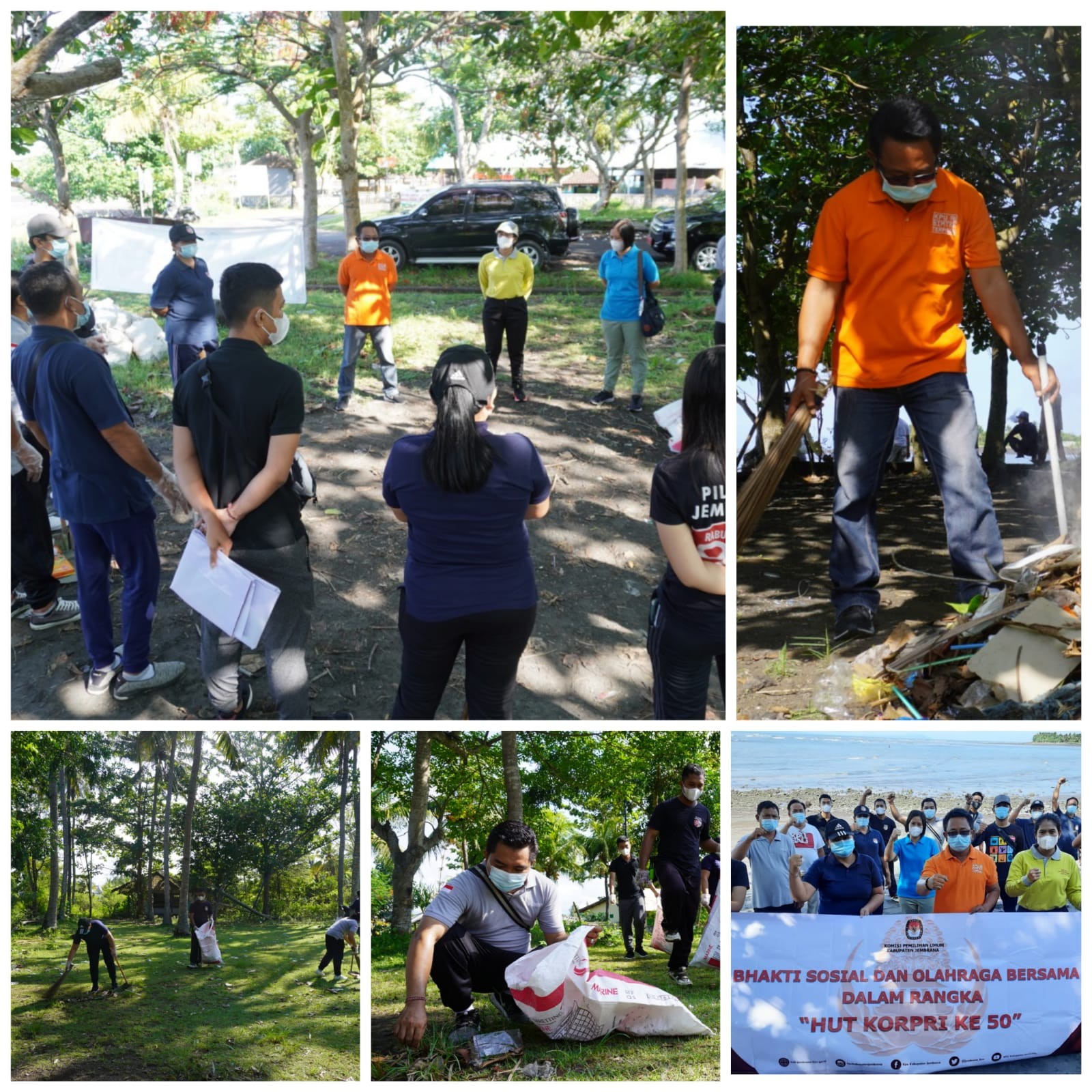 Dalam mendukung pelestarian lingkungan khususnya ekosistem pantai habitat penyu-penyu laut dan sekitarnya, KPU Kabupaten Jembrana melaksanakan bakti sosial berupa bersih-bersih sampah plastik atau sampah lainnya yang tidak bisa diurai oleh alam disekitaran habitat penyu-penyu tersebut. Adapun acara bakti sosial tersebut juga bagian dari memperingati HUT KORPRI ke 50.