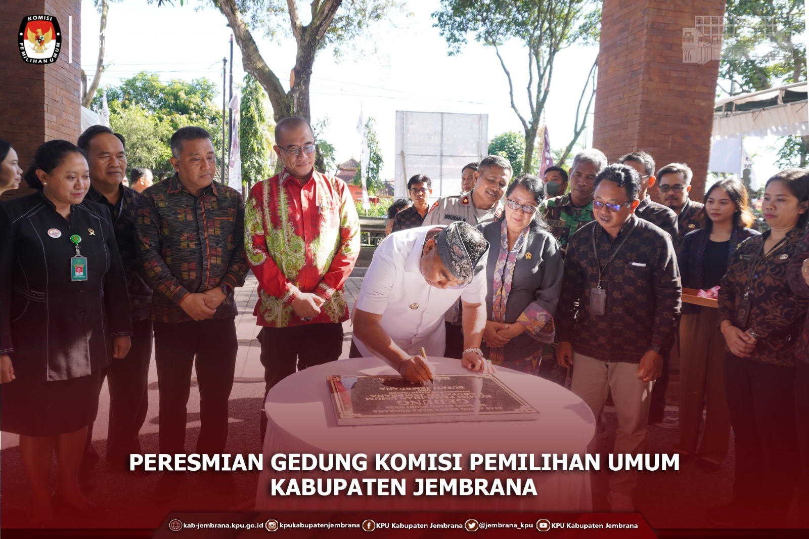#TemanPemilih – Selasa (07/03).KPU Jembrana melaksanakan Peresmian Gedung Baru yang beralamat di Jalan Udayana no. 40 Negara Kelurahan Baler Bale Agung kecamatan Negara. Dalam Peresmian ini dihadiri Ketua KPU RI Bapak Hasyim Asy’ari, Ketua, anggota dan sekretaris KPU Provinsi Bali, Forkominda Kabupaten Jembrana, KPU Kabupaten/Kota se Bali dan PPK Se- kabupaten Jembrana.