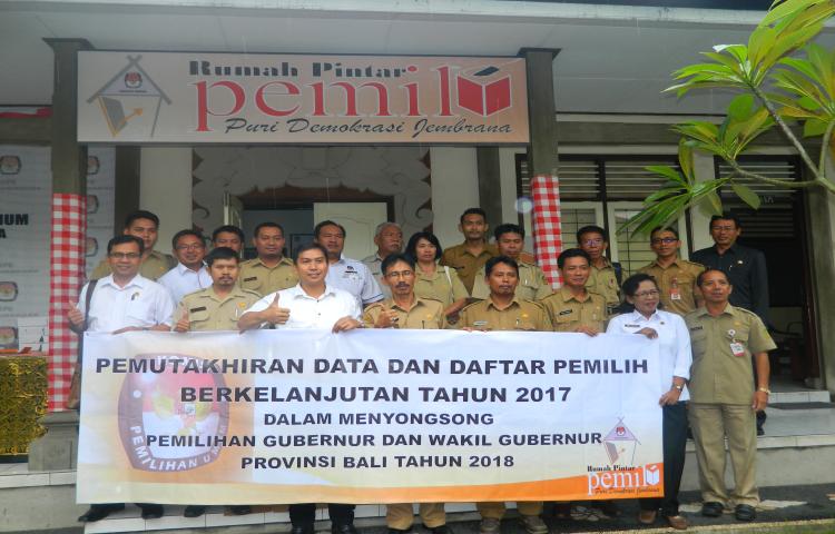 KPU Jembrana mengadakan Focus Group Discussion (FGD) pemuktahiran data pemilih berkelanjutan bertempat dikantor KPU Jembrana. Acara FGD dihadiri oleh Komisioner KPU Jembrana, Disdukcapil Jembrana, Kesbangpol Jembrana Kepala Desa/Lurah Kecamatan Negara dan Kecamatan Jembrana. Rapat dimulai pukul 10.00 WITA dibuka oleh Ketua KPU Jembrana dan menjelaskan tujuan mengadakan FGD diharapkan kerjasama KPU Jembrana dengan Disdukcapil, Kesbangpol dan Desa/Lurah secara optimal untuk menciptakan daftar pemilih yang komprehensif, akurat, aktual sehingga semua masyarakat yang mempunyai hak pilih bisa menggunakan hak pilihnya pada saat pemilihan. Untuk itu KPU Jembrana melakukan inovasi terhadap permasalahan tersebut dengan mengundang stakeholder untuk membahas dan mencari solusi sebelum tahapan pemuktahiran Pilgub Bali tahun 2018 di mulai. KPU Jembrana sangat berterima kasih untuk semua masukan maupun kritik dari peserta FGD dan diharapkan bantuan dan kerjasamanya nanti pada penyelenggaraan Pilgub Bali yang dilaksanakan di tahun 2018.