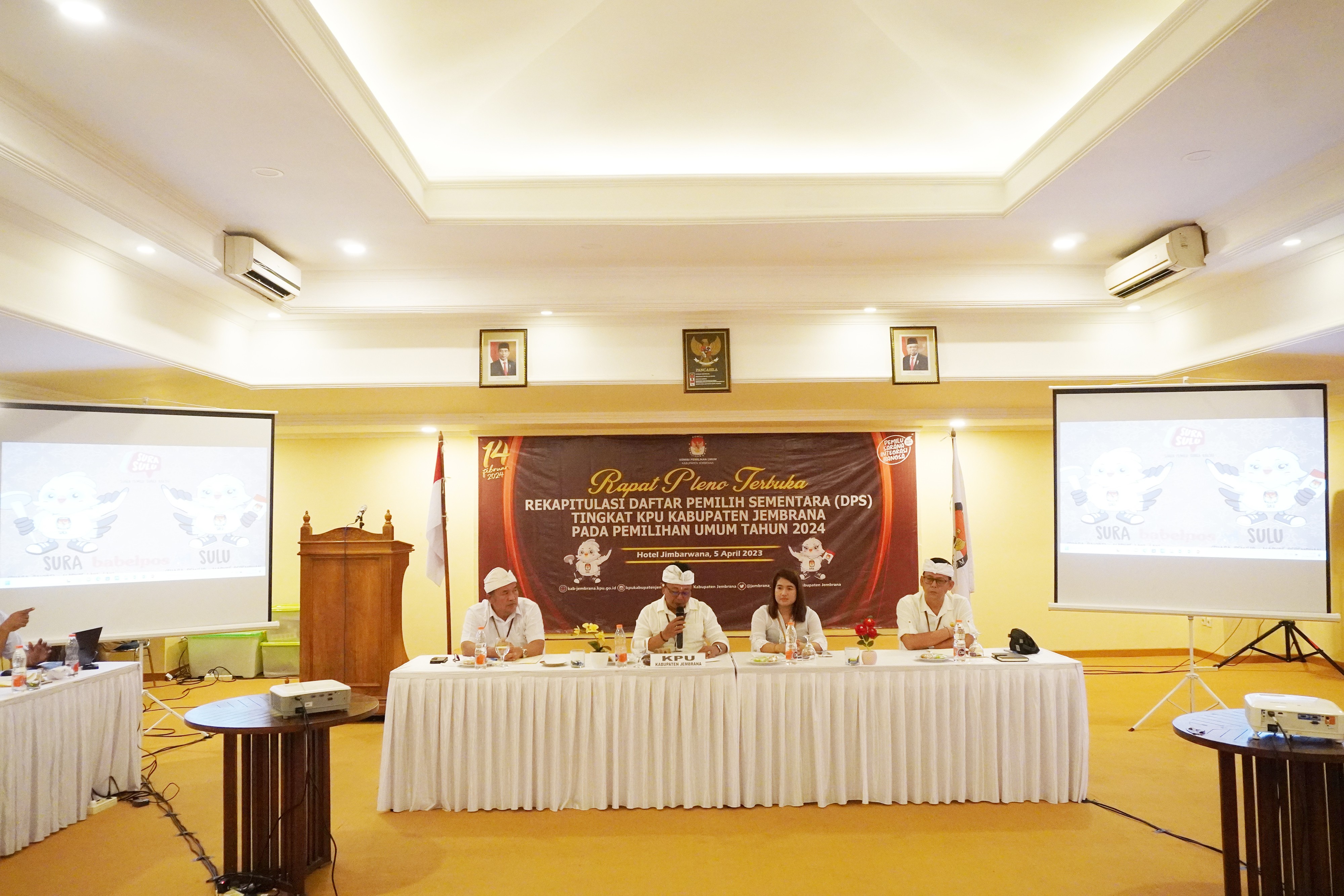 #TemanPemilih, Bertempat di Hotel Jimbarwana Negara, KPU Jembrana melaksanakan Rapat Pleno Terbuka Rekapitulasi Daftar Pemilih Sementara Pemilu Tahun 2024, Rabu (5/4/2023). Turut hadir dari Polres Jembrana, Kodim 1617 Jembrana, Kesbang. Pol Jembrana, Dinas Dukcapil Jembrana, Dinas Pemerintahan Masyarakat Desa Jembrana, Bawalu Jembrana, Rutan Klas IIB Jembrana, Perwakilan Partai Politik se-Kabupaten Jembrana serta Ketua dan Anggota PPK Divisi Data.
