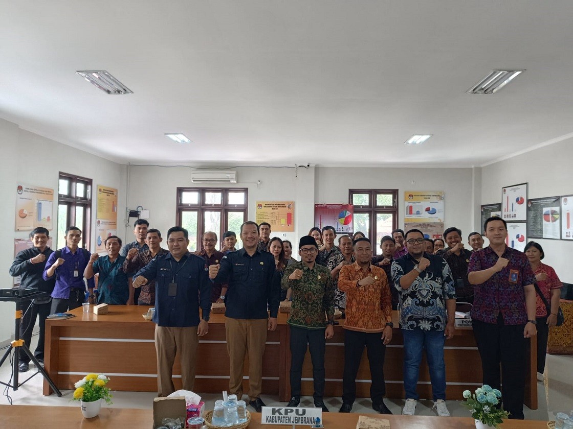 Jembrana - Komisi Pemilihan Umum (KPU) Kabupaten Jembrana menggelar rapat evaluasi kinerja Panitia Pemutakhiran Data Pemilih (Pantarlih) selama tujuh hari dan laporan progres pencocokan dan penelitian (coklit) selama sepuluh hari dalam rangka Pemilihan Serentak 2024. Kegiatan ini diadakan di kantor KPU Jembrana (02/07/2024), dan dihadiri oleh anggota Pokja Pemutakhiran Data Pemilih dan Penyusunan Daftar Pemilih, Badan Pengawas Pemilu (Bawaslu) Kabupaten Jembrana, serta Panitia Pemilihan Kecamatan (PPK) se-Kabupaten Jembrana.