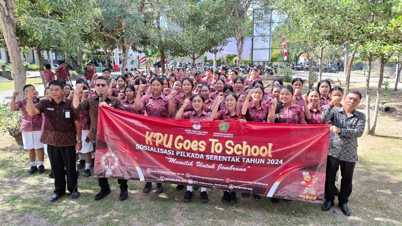 Jembrana - KPU Jembrana mengadakan sosialisasi dengan tema "KPU Goes to School" yang berlangsung di berbagai SMA dan SMK di Jembrana. Kegiatan ini bertujuan memberikan pemahaman kepada siswa tentang pentingnya demokrasi dan mendukung suksesnya Pilkada Jembrana yang akan digelar pada 27 November 2024.