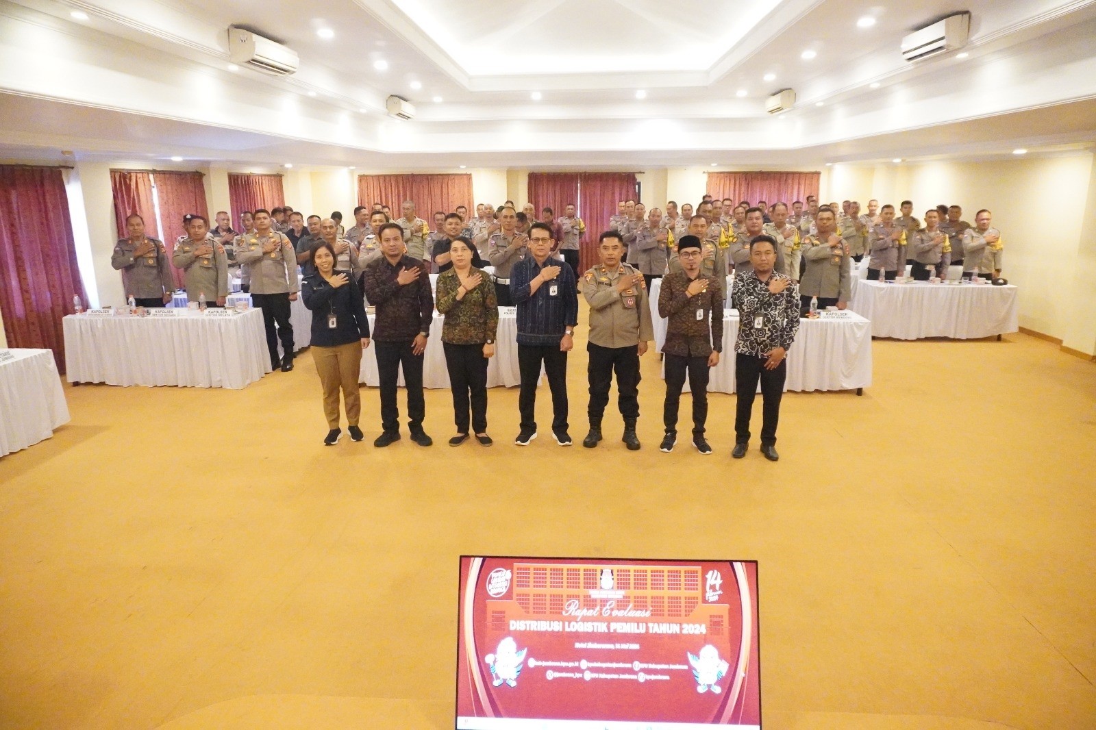 Jembrana - Komisi Pemilihan Umum (KPU) Kabupaten Jembrana menggelar rapat evaluasi logistik Pemilihan Umum (Pemilu) 2024. Acara ini berlangsung di Hotel Jimbarwana dan dihadiri oleh Ketua dan Anggota KPU Kabupaten Jembrana, Kapolres Jembrana yang diwakili oleh Kabag OPS Polres Jembrana, Kasat Intelkam Polres Jembrana, Kasat Lantas Polres Jembrana, Kasat Binmas Polres Jembrana, Kapolsek Se Kabupaten Jembrana, Bhabinkamtibmas Se Kabupaten Jembrana.