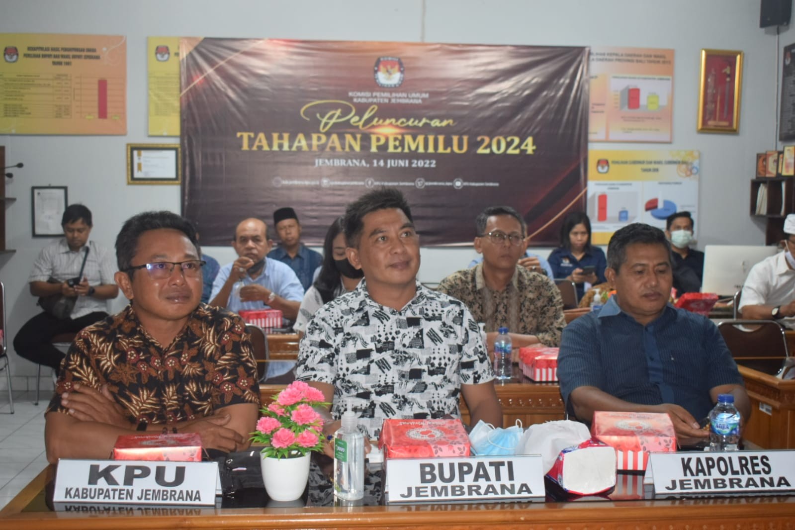 #TemanPemilih – Selasa (14/6). Menuju Pemungutan Suara Pemilu tahun 2024, KPU Jembrana menggelar “NOBAR” Peluncuran Tahapan Pemilu yang diselenggarakan oleh KPU RI. Hadir dalam kegiatan ini Ketua dan Anggota KPU Jembrana, Porkominda Jembrana, Bawaslu Jembrana dan Partai Politik di Kabupaten Jembrana beserta seluruh jajaran Sekretariat KPU Jembrana. Kegiatan dilaksanakan di Kantor KPU Jembrana jalan Udayana No 40 Negara.