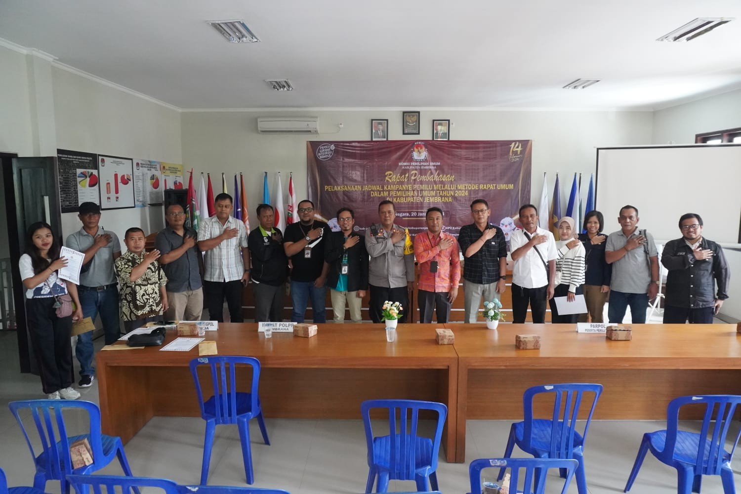 Jembrana - Komisi Pemilihan Umum (KPU) Jembrana menggelar rapat pembahasan Pelaksanaan jadwal Kampanye Pemilu melalui metode rapat umum dalam Pemilihan Umum Tahun 2024.