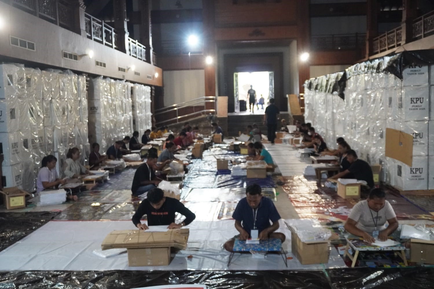 Jembrana - Hari Jumat (5/1/2024), Komisi Pemilihan Umum (KPU) Jembrana melaksanakan pelipatan surat suara yang dilaksanakan di gudang auditorium.
