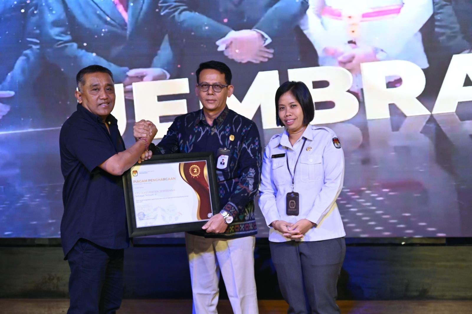 Dalam sebuah acara rapat evaluasi yang diselenggarakan oleh KPU Provinsi Bali di Grand Vilandra Resort - Lovina Singaraja (24-26/4/2024), KPU Kabupaten Jembrana berhasil meraih dua penghargaan bergengsi. Acara yang dihadiri oleh Ketua dan Sekretaris KPU Kabupaten Jembrana, Pejabat Pembuat Komitmen, serta operator Silog KPU Kabupaten Jembrana tersebut menjadi momen penting bagi pengakuan atas dedikasi dan kinerja luar biasa yang telah ditunjukkan oleh KPU Jembrana.