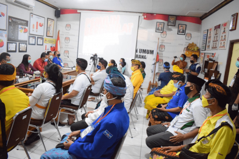 Ketua KPU Jembrana I Ketut Gde Tangkas menerima kedatangan rombongan Bakal Pasangan Calon bersama Tim. Sesuai dengan SOP, Ketua KPU menanyakan maksud dan tujuan kedatangan Bakal Pasangan Calon bersama Tim ke KPU Jembrana dan Bakal Pasangan Calon menjelaskan kedatangan mereka untuk mendaftar sebagai Calon Bupati dan Wakil Bupati Jembrana tahun 2020.