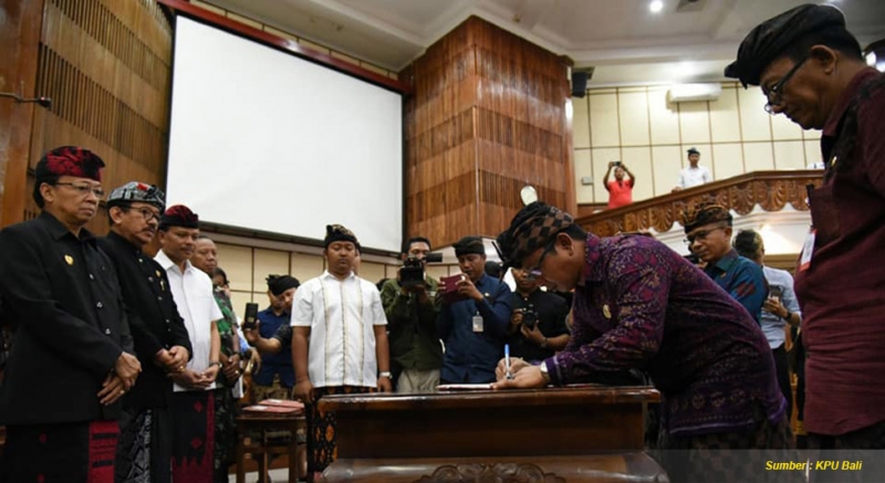 Penandatanganan NPHD dilakukan oleh masing-masing Kepala Daerah, Ketua KPU Kabupaten/Kota dan Bawaslu Kabupaten/Kota yang melaksanakan Pilkada Serentak Tahun 2020. Adapun Kabupaten/Kota yang melaksanakan Pilkada 2020 di Provinsi Bali yaitu Kota Denpasar, Badung, Tabanan, Jembrana, Bangli dan Karangasem.
