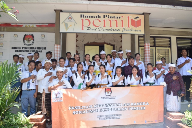 Pelaksanaan Fasilitasi Audensi Pendididkan Pemilih Rumah Pintar Pemilu (RPP) KPU Kabupaten Jembrana ( 28/10 ). Kegiatan dilaksanakan di Ruang RPP KPU Jembrana yang dihadiri SMK Negeri 1 Negara dan SMK PGRI 1 Negara sebanyak 30 orang siswa siswi. Kegiatan yang di-handle oleh Made Widiastra Divisi Sosialisasi, SDM, dan Parmas KPU Jembrana ini banyak memberikan informasi terkait Pilkada Jembrana 2020.