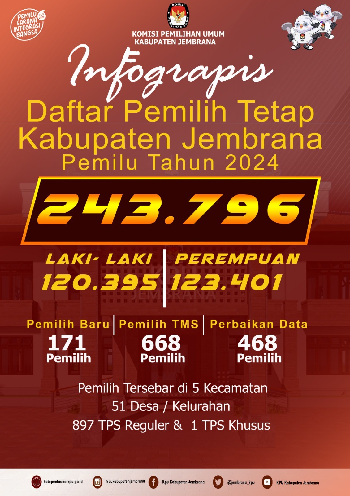 Berita Acara Rekapitulasi Daftar Pemilih Tetap (DPT) Tingkat Kabupaten Jembrana Dalam Pemilihan Umum Tahun 2024, dapat diunduh pada link dibawah ini :