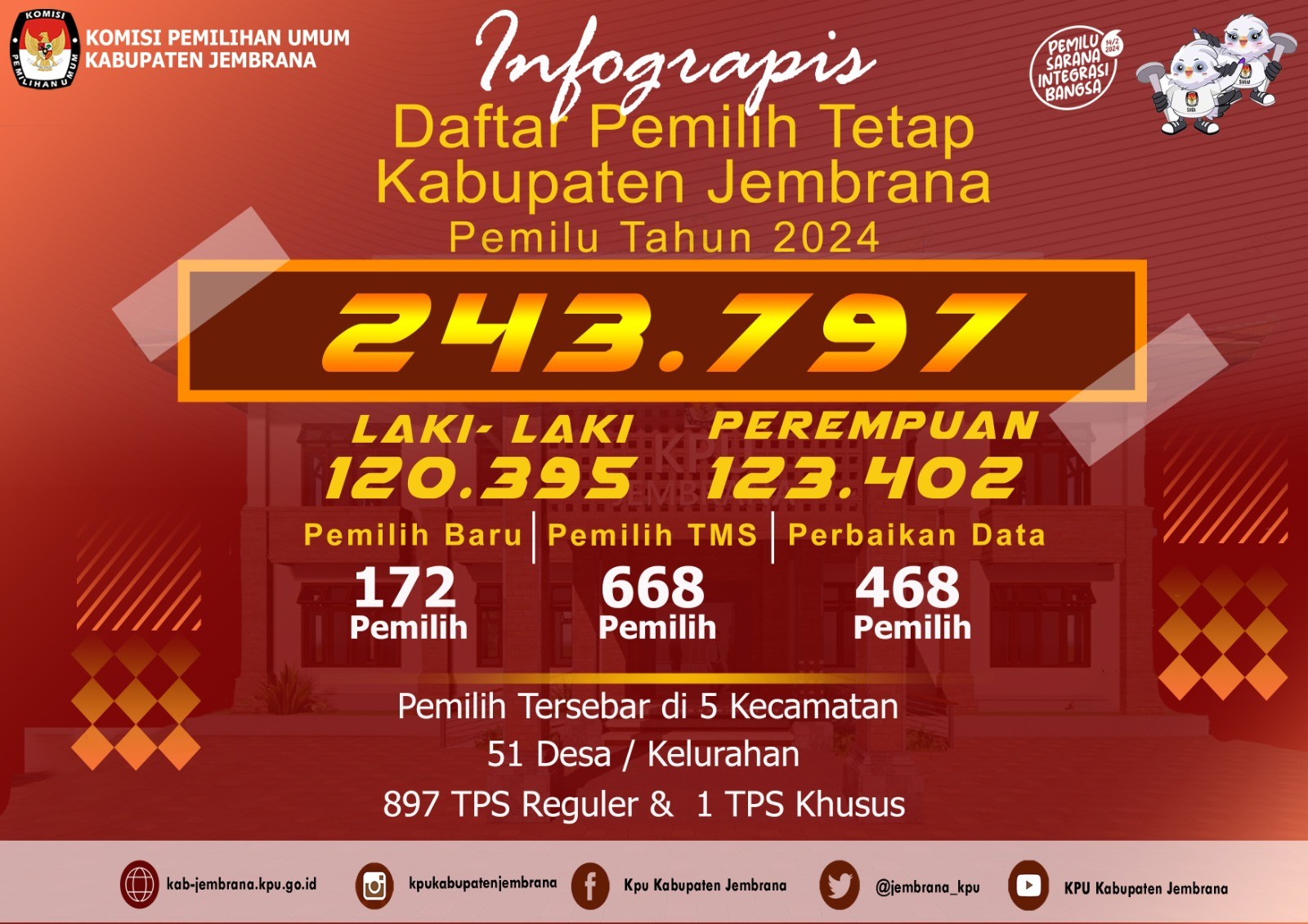 Berikut kami umumkan Daftar Pemilih Tetap (DPT) - Perbaikan Dalam Pemilihan Umum Tahun 2024 sesuai dengan Berita Acara Nomor : 669/PL.01.2-BA/5101/2023, Tanggal 28 Juni 2023 atas masukan dari peserta Rapat Pleno Terbuka Rekapitulasi Daftar Pemilih Tetap (DPT) Tingkat Provinsi Bali, Tanggal 28 Juni 2023. Berita Acara dapat diunduh pada link berikut ini :