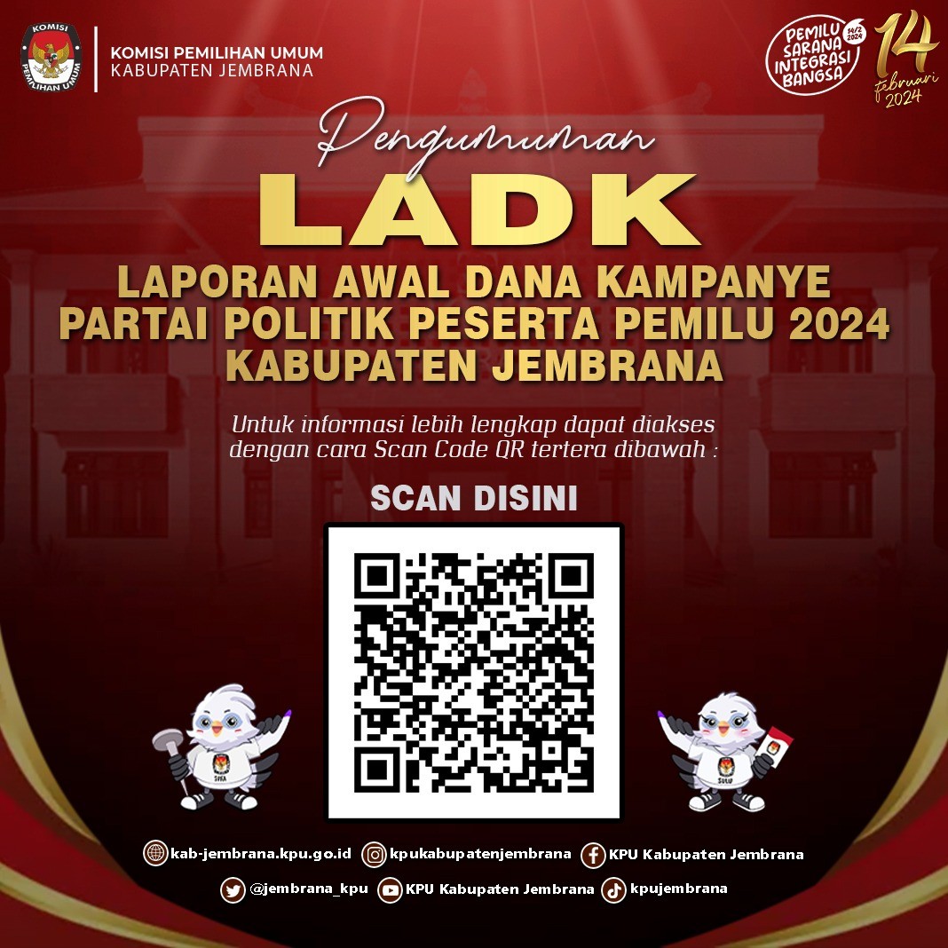 Pengumuman LADK Partai Politik Peserta Pemilu Tahun 2024 Senin, 08 Januari 2024 13:00 99 Klik Disini Bagikan: Dilihat 99 Kali.