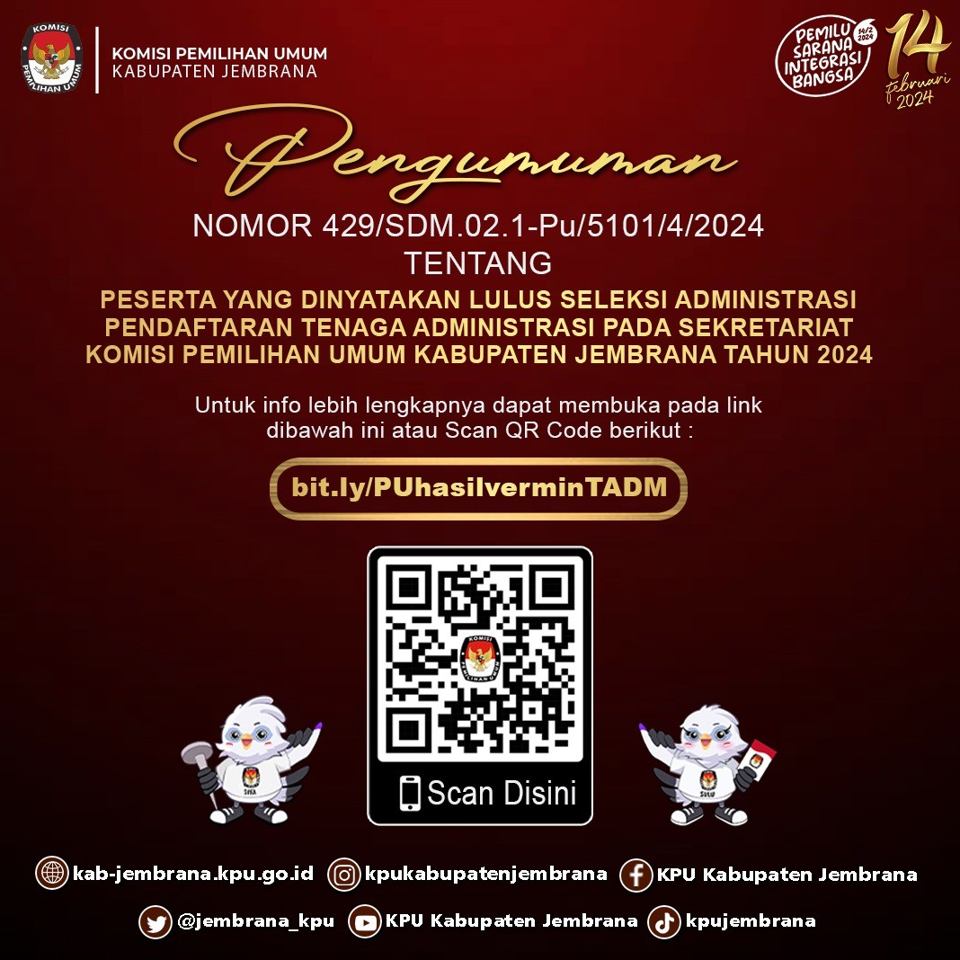PESERTA YANG DINYATAKAN LULUS SELEKSI ADMINISTRASI PENDAFTARAN TENAGA ADMINISTRASI PADA SEKRETARIAT KOMISI PEMILIHAN UMUM KABUPATEN JEMBRANA TAHUN 2024