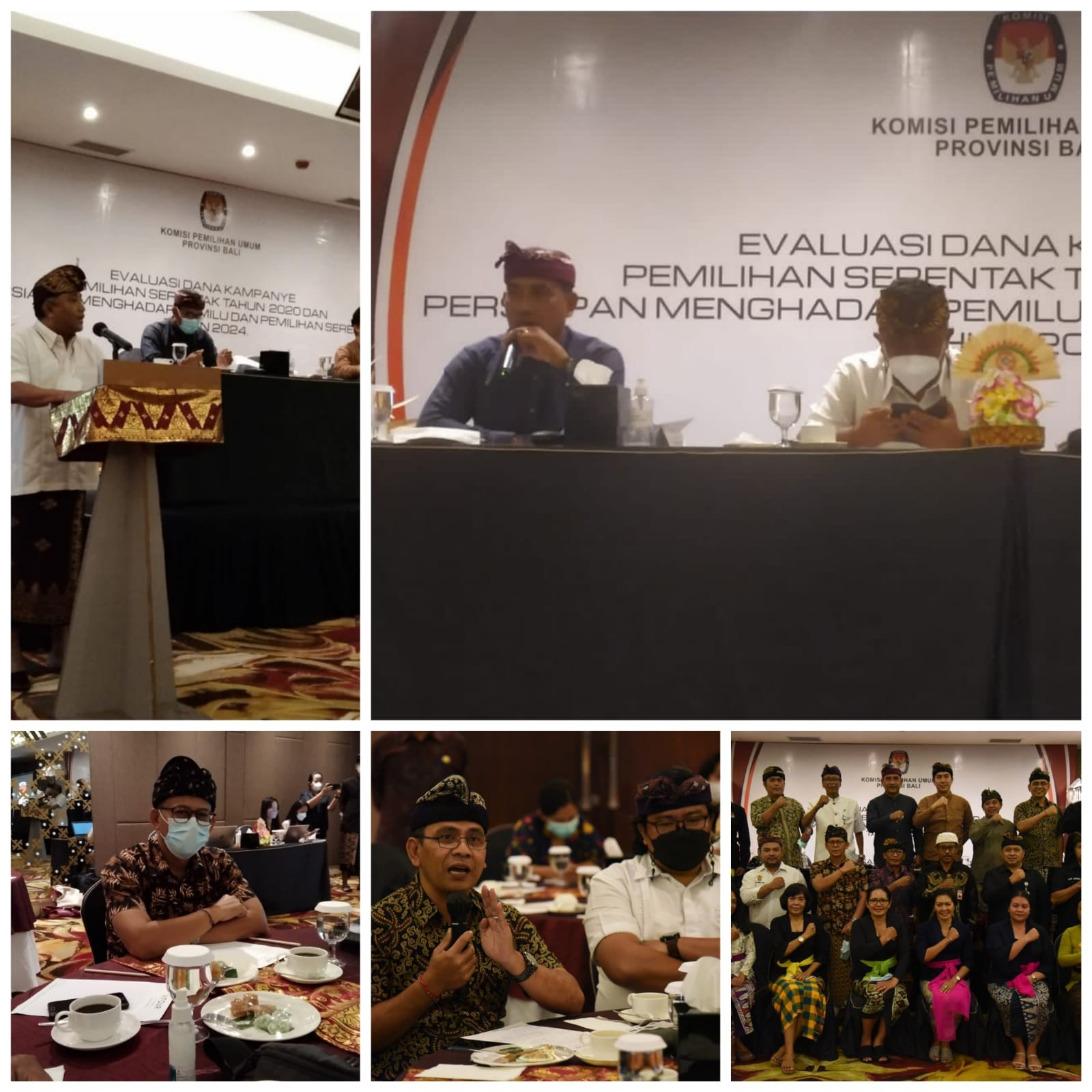 Jembrana, 25 Nopember 2021 – Anggota KPU Kabupaten Jembrana Kordiv. Hukum dan Teknis serta Kasubag Hukum dan Teknis Penyelenggaraan menghadiri Rapat Evaluasi Dana Kampanye Pemilihan Serentak Tahun 2020 dan persiapan menghadapi Pemilihan Serentak Tahun 2024. Rapat diadakan di Four Star by Trans Hotel Jalan Puputan Renon Denpasar, Rapat dimulai pukul 9.30 Wita dan di hadiri oleh seluruh Anggota KPU Kabupaten/Kota Kordiv. Hukum dan Teknis serta Kasubag Hukum dan Teknis Penyelenggaraan se-Bali. Rapat evaluasi dibuka oleh Ketua KPU Provinsi Bali Dewa Agung Lidartawan yang memberikan sejumlah pengarahan terkait persiapan tahapan pemilu serentak yang saat ini sudah berjalan diantaranya penyusunan regulasi dan simulasi penyederhanaan surat suara Pemilu.
