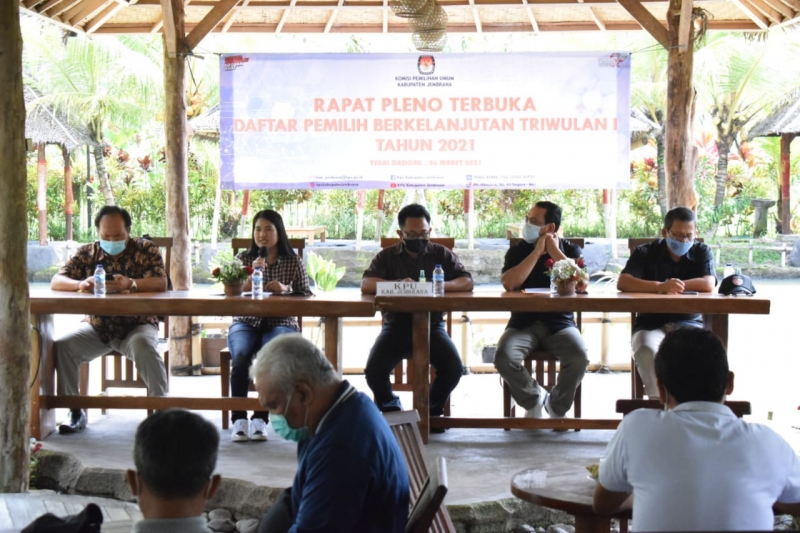 Jumat, 26 Maret 2021, KPU kabupaten Jembrana Melaksanakan Rapat Koordinasi dan Rapat Pleno Terbuka Rekapitulasi Daftar Pemilih Berkelanjutan Triwulan I Tahun 2021 bertempat di Rumah Makan Tegal Dadong. Berdasarkan ketentuan Surat Dinas Plt. Ketua Komisi Pemilihan Umum Republik Indonesia Nomor : 132/PL.02-SD/01/KPU/II/2021, Tanggal 4 Februari 2021, Perihal Pemutakhiran Data Pemilih Berkelanjutan Tahun 2021. Rapat dihadiri oleh Polres Jembrana, Kodim 1617 Jembrana, Pengadilan Negeri Jembrana, Bawaslu Kabupaten Jembrana, Satgas Penanggulangan Covid-19 Kabupaten Jembrana, Dinas Kependudukan dan Catatan Sipil Kabupaten Jembrana, Badan Kesatuan Bangsa dan Politik Kabupaten Jembrana, Dinas Pemberdayaan Masyarakat Desa (PMD) Kabupaten Jembrana, Dinas Komunikasi dan Informatika Kabupaten Jembrana serta Partai Politik di Kabupaten Jembrana.
