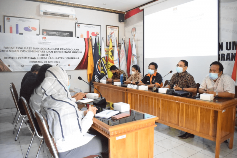 Rapat Evaluasi Sosialisasi Pengelolaan Jaringan Dokumentasi Dan Informasi Hukum( JDIH ) dilaksanakan KPU Jembrana bertempat diruangan RPP Puri Demokrasi Jembrana. Rapat di hadiri oleh Komisioner KPU Jembrana, Bawaslu Jembrana, Koimfo Jembrana dan Pegawai KPU Jembrana. Rapat dibuka oleh Ketua KPU Jembrana I Ketut Gde Tangkas Sudiantara dalam arahannya meminta kepada peserta rapat untuk like dan coment JDIH di Website, Instagram maupun Facebook. Disamping itu juga diharapkan dengan adanya rapat evaluasi hari ini JDIH KPU Jembrana akan terus lebih baik.