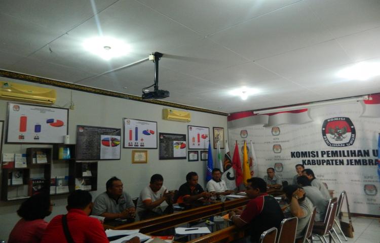KPU Jembrana mengadakan rapat pemutakhiran data pemilih. Bertempat di ruang rapat KPU Jembrana. Rapat dimulai pukul 09.00 WITA dipimpin langsung oleh Ketua KPU Jembrana I Gusti Ngurah Agus Darmasanjaya membahas kendala dalam pemuktahiran data pemilih. Rapat diikuti oleh semua Komisioner, Sekretaris dan kasubbag serta staf pada pemuktahiran data pemilih. Rapat selesai pukul 10.00 WITA.
