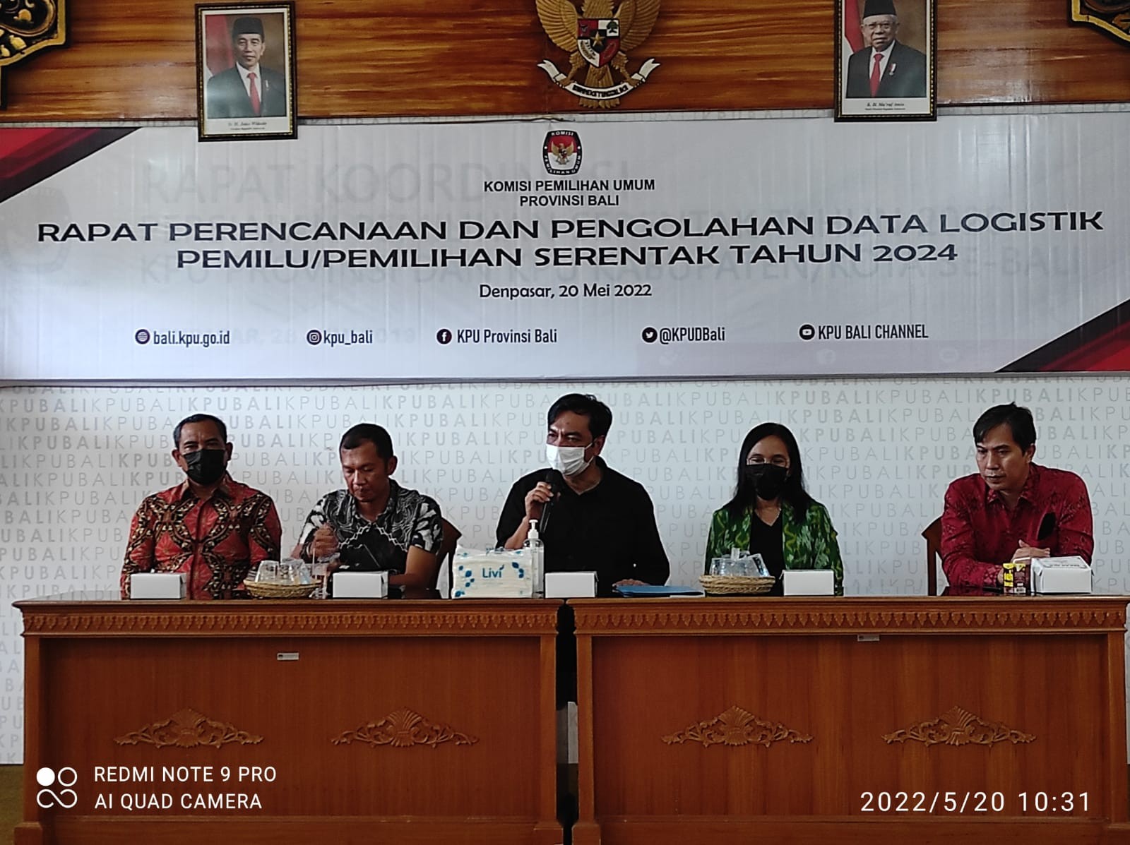 TemanPemilih - Jumat (20/5). Ketua, Anggota dan Sekretaris KPU Kabupaten Jembrana menghadiri Rapat perencanaan dan Pengolahan Data Logistik Pemilu/Pemilihan Serentak Tahun 2024. Rapat yang dihadiri oleh Ketua, Anggota dan Sekretaris KPU Kabupaten/Kota se-Bali serta Pejabat Struktural di KPU Provinsi Bali berlangsung di Ruang Rapat KPU Provinsi Bali. Anggota KPU Provinsi Bali I Gede John Darmawan membuka acara rapat dan sekaligus memperkenalkan seluruh Komisioner KPU Kabupaten/Kota se-Bali.