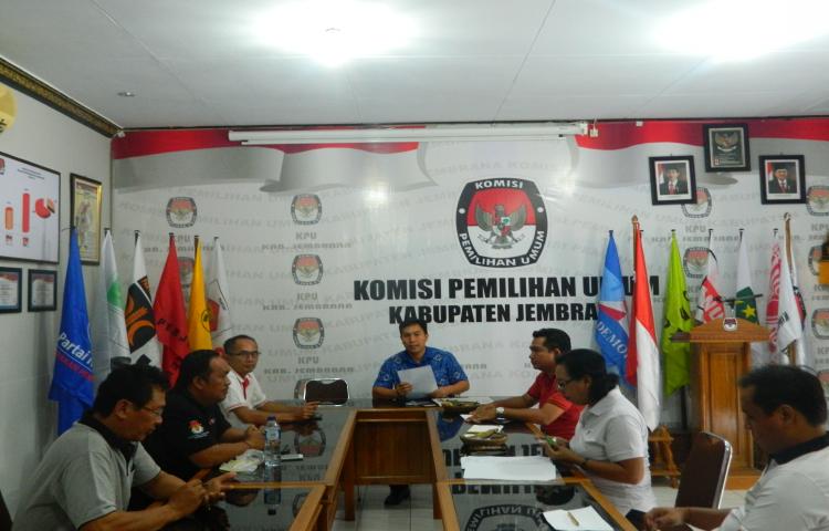 Bertempat di ruang rapat KPU Jembrana, Rapat persiapan Focus Disscusion Group (FGD) Jumat, 9 Juni 2017 dimulai pukul 09.00 WITA dengan peserta rapat Komisioner KPU Jembrana terdiri dari Ketua KPU Jembrana yang memimpin langsung rapat, Divisi SDM dan Parmas Made Widiastra dan Divisi Logistik I Putu Eka Sutamarbawa serta Sekretariat KPU Jembrana yaitu Sekretaris KPU Jembrana I Gede Martiana didampingi oleh Kasubbag serta staf.