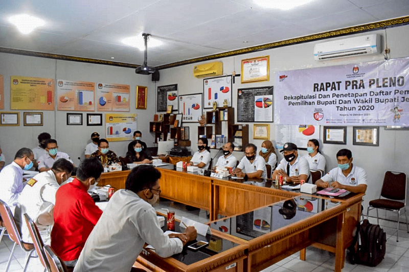 KPU Jembrana, Rabu ( 14/10 ). KPU Jembrana melaksanakan rapat pra pleno penetepan DPT Pemilihan Bupati dan Wakil Bupati Jembrana Tahun 2020. Acara dimulai pukul 14.00 wita di ruang Rumah Pintar Pemilu Puri Demokrasi Jembrana Kantor sekretariat KPU Jembrana yang dihadiri oleh undangan dari Bawaslu Jembrana, Disduk Capil, Kesbangpol Jembrana, Ketua PPK Se-Jembrana, Anggota PPK Divisi Data Se-Jembrana, Lo Pasangan Calon nomor urut 1 dan LO Pasangan Calon nomor urut 2.