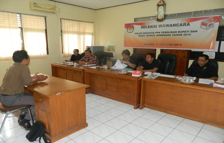 Setelah melalui seleksi administrasi dan seleksi tertulis calon Anggota PPK Pilbub Jembrana Tahun 2015, KPU Kabupaten Jembrana mengadakan seleksi wawancara guna mengetahui secara langsung pengetahuan masing-masing calon Anggota PPK yang lulus seleksi tertulis mengenai kepemiluan dari Tanggal 11 s.d 13 Mei 2015 bertempat di Kantor KPU Kabupaten Jembrana, Jalan Udayana Nomor 40 Negara. Adapun jumlah masing-masing kecamatan yang ikut seleksi wawancara adalah : Kecamatan Pekutatan : 7 orang, Kecamatan Mendoyo : 9 orang, Kecamatan Jembrana : 9 orang, Kecamatan Negara : 10 orang dan Kecamatan Melaya : 7 orang, sesuai dengan pengumuman Nomor : 153/Pan-Sel/KPU-Kab-016.433733/2015, tentang Penetapan Hasil Seleksi Test Tertulis Calon Anggota Panitia Pemilihan Kecamatan (PPK) Dalam Penyelenggaraan Pemilihan Bupati dan Wakil Bupati Jembrana Tahun 2015. Terkait dengan jadwal seleksi wawancara adalah sebagai berikut :