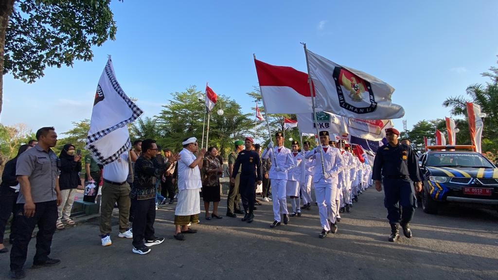 Rangkaian acara juga mencakup Prosesi Penyerahan Bendera Kirab Partai Politik Peserta Pemilu Tahun 2024, di mana bendera dari KPU Kabupaten Buleleng diserahkan kepada KPU Kabupaten Jembrana yang melibatkan Pasukan Paskibraka Kabupaten Jembrana