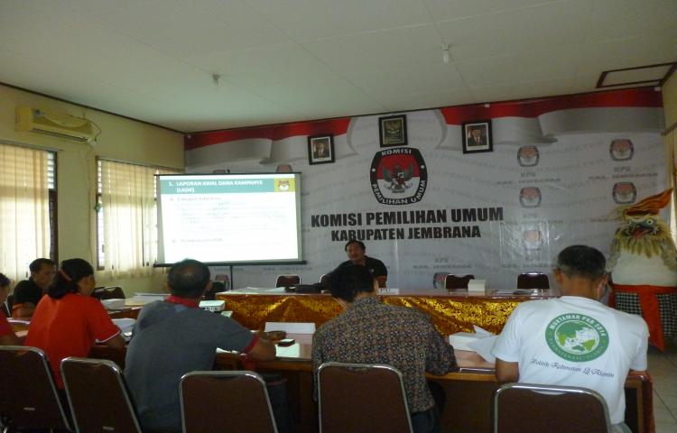KPU Kabupaten Jembrana mengadakan Sosialisasi Audit Dana Kampanye di Kantor KPU Kabupaten Jembrana, hadir dalam acara ini sesuai dengan undangan yaitu Tim Pemenangan Paslon, Panwaslih Kabupaten Jembrana dan Kesbangpol Kabupaten Jembrana. Made Widiastra, SE Anggota KPU Kabupaten Jembrana yang membidangi Audit Dana Kampanye dalam hal ini menyampaikan tentang Pelaporan Dana Kampanye dan diharapkan masing-masing Paslon dapat menyampaikan laporannya secara legal, akuntabel dan transparan dan juga ditegaskan bahwa pelanggaran terhadap Pelaporan Dana Kampanye dapat berakibat pada pembatalan sebagai Pasangan Calon sesuai dengan PKPU No. 08 Tahun 2015