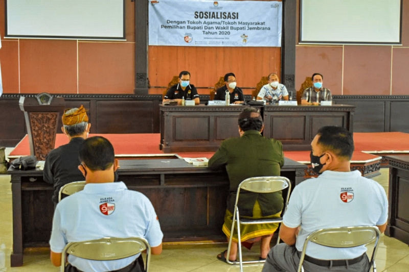 KPU Jembrana melaksanakan Sosialisasi Dengan Tokoh Agama/Tokoh Masyarakat Pemilihan Bupati dan Wakil Bupati Jembrana tahun 2020. Acara dilaksanakan di Gedung Kesenian Ir. Soekarno Jembrana. Hadir dalam acara ini FKUB Kabupaten Jembrana, PHDI Jembrana, Walubi Kabupaten Jembrana, MPUK Kabupaten Jembrana, Paroki Kabupaten Jembrana, MMDA Kabupaten Jembrana, Karang Taruna Kabupaten Jembrana, PKK Kabupaten Jambrana dan Partai Politik ( Demokrat, PPP, PKB, PSI). Ketua KPU Jembrana I Ketut Gde Tangkas Sudiantara dalam sambutannya sekaligus membuka acara berharap dengan dilakukannya sosialisasi secara masif oleh KPU Jembrana target partisipasi 85 persen bisa tercapai.